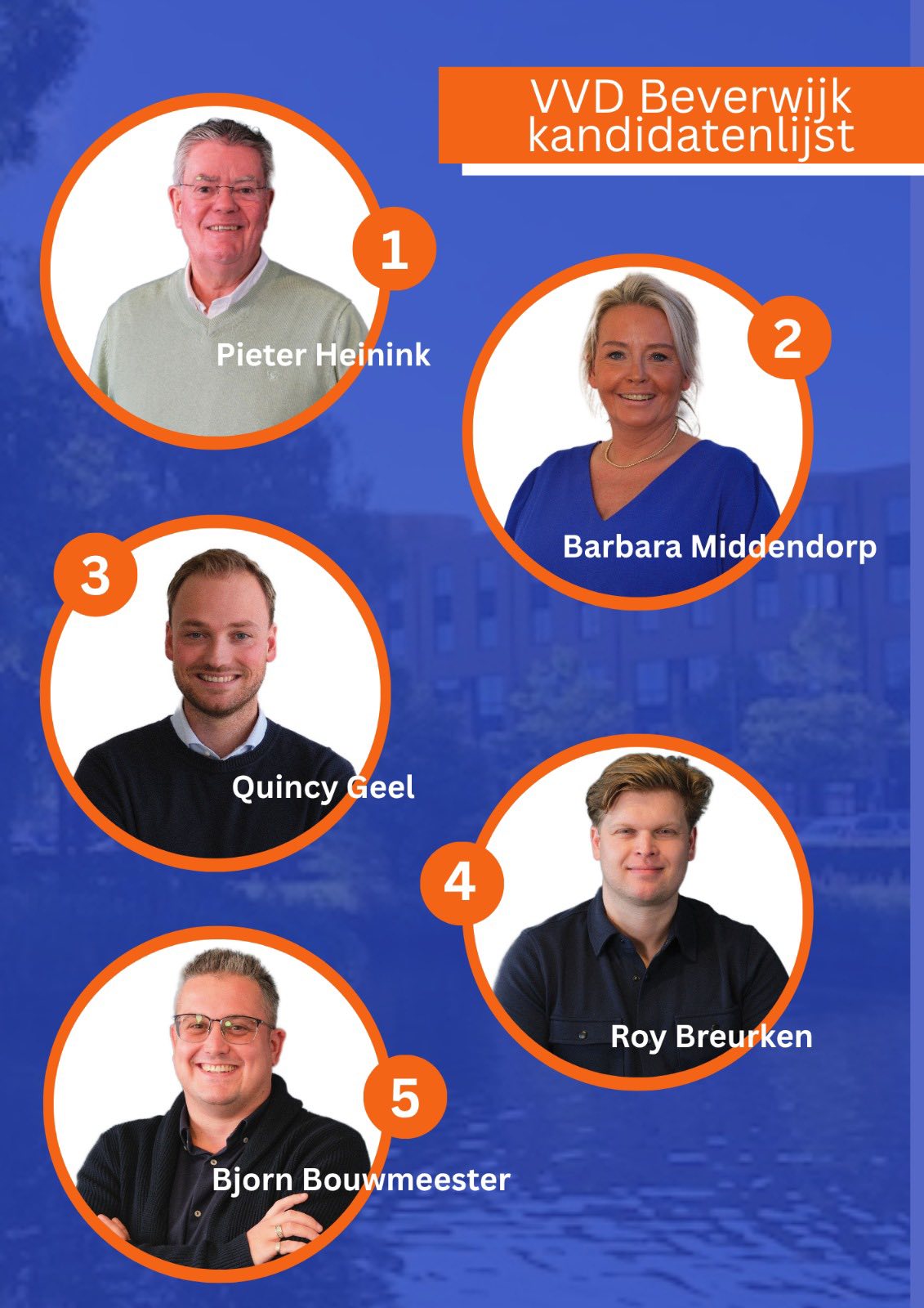 Aan kop van de lijst staat Pieter Heinink als lijsttrekker. Hij brengt ruime lokale ervaring en betrokkenheid mee en staat symbool voor de liberale koers van VVD Beverwijk richting 2026.